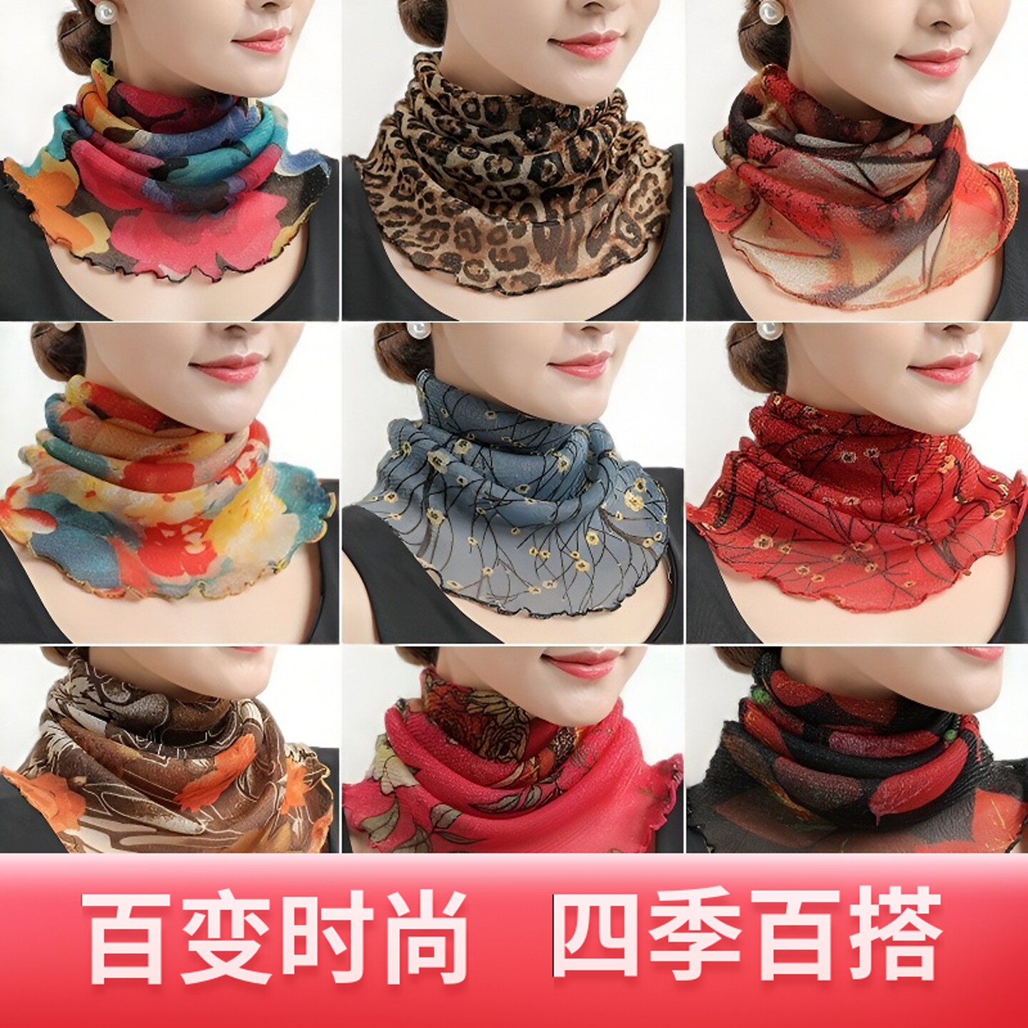 真丝围脖套头脖套防晒小丝巾春秋夏季薄款百搭假领子女士装饰围巾