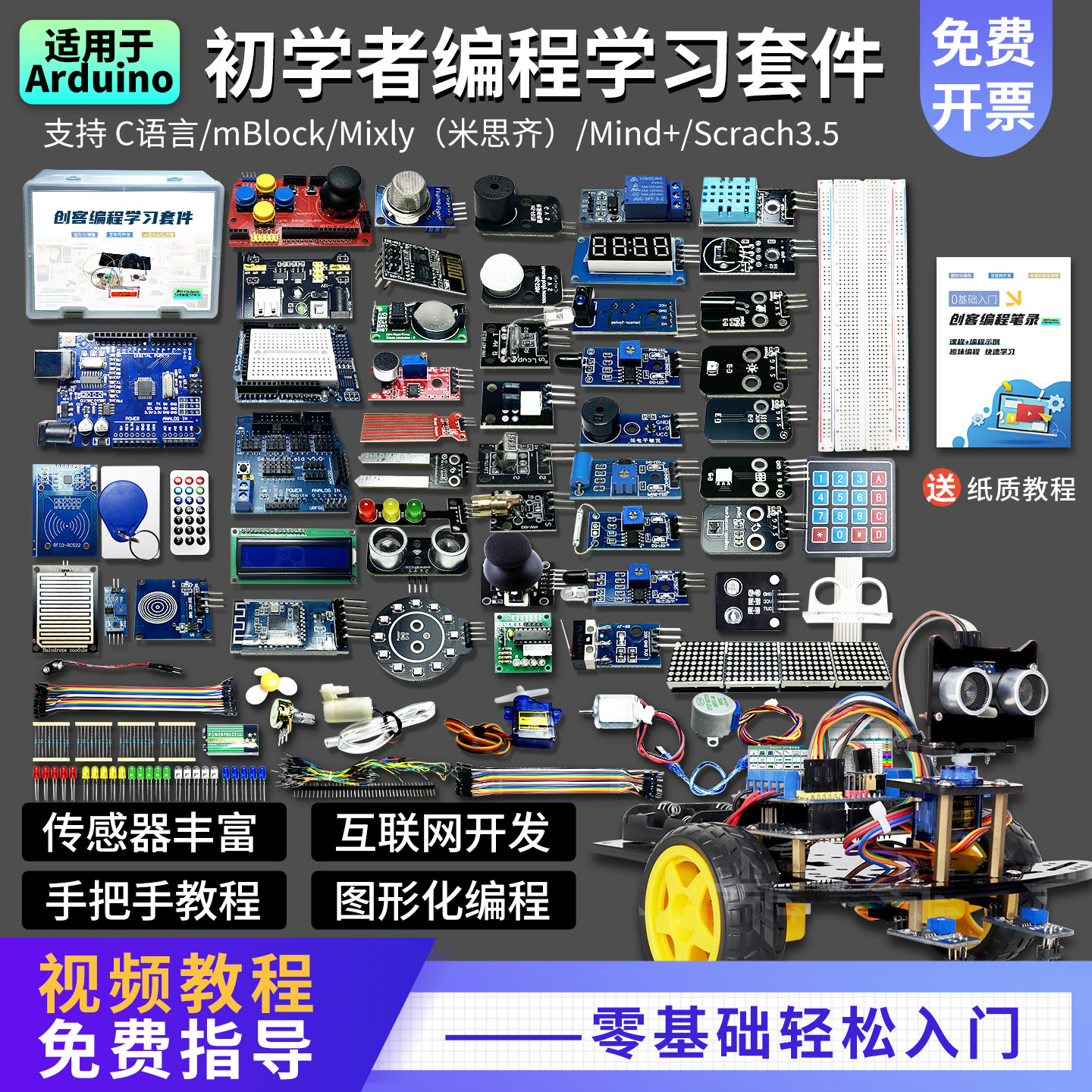 适用arduino uno编程学习套件开发板智能小车mixly图形化scratch