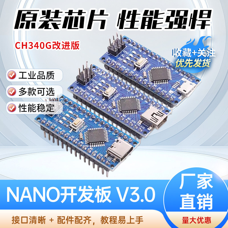 Nano V3.0开发板CH340 ATMEGA328单片机控制器Type-C兼容Arduino
