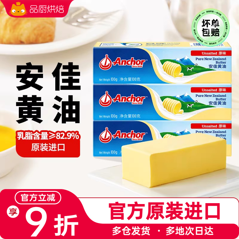 安佳动物黄油原味100g*3官方旗舰店进口烘焙专用材料无盐家用商用