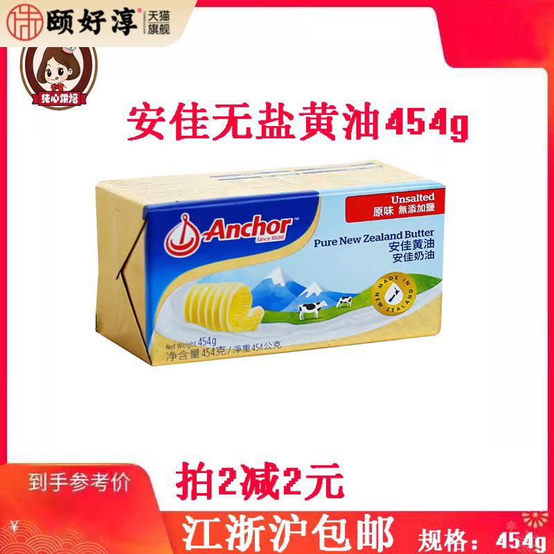 安佳淡味黄油454g动物性饼干面包无添加盐黄油曲奇雪花酥家用原料