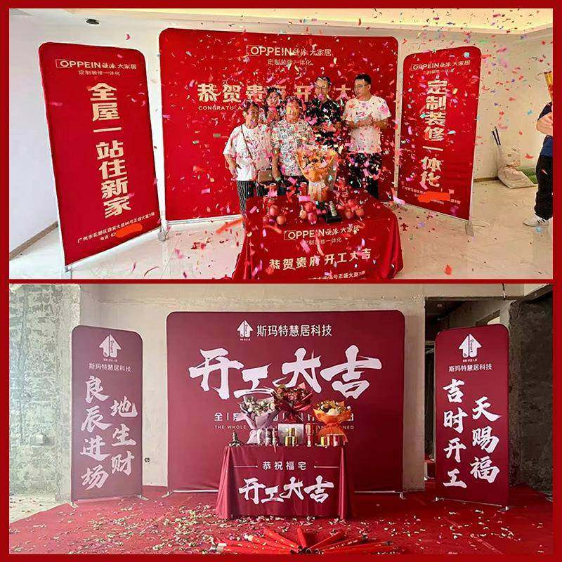 开工大吉仪式全开套房72用品工锤装修公新开工桌司布横幅背景展架