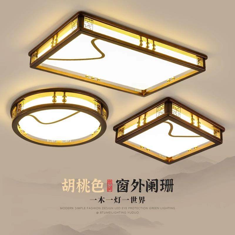现代新中式实木吸顶长方形套房客厅卧室书房1.2米中国风装修灯饰