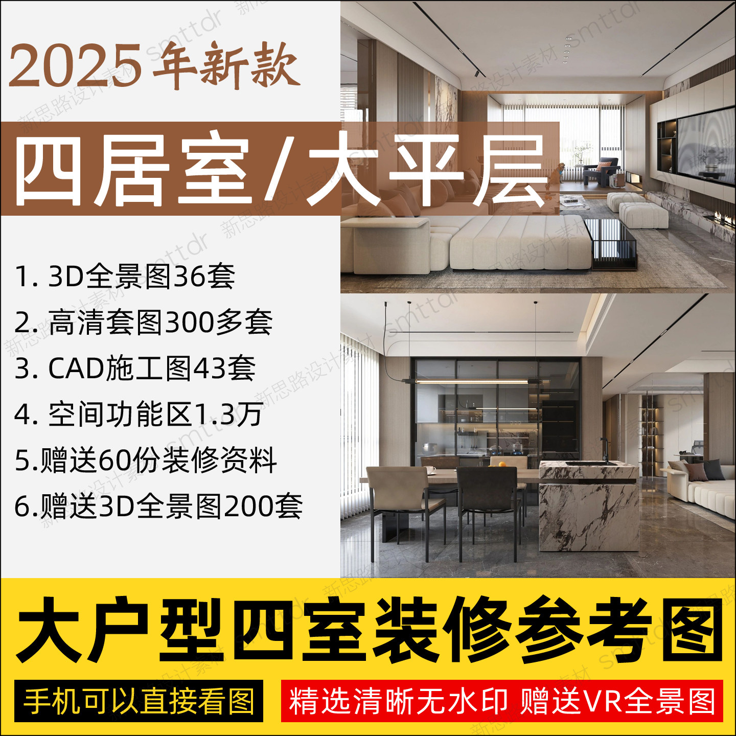 房子四室两厅大平层装修设计效果图厨房客厅全屋新中式套房商品房