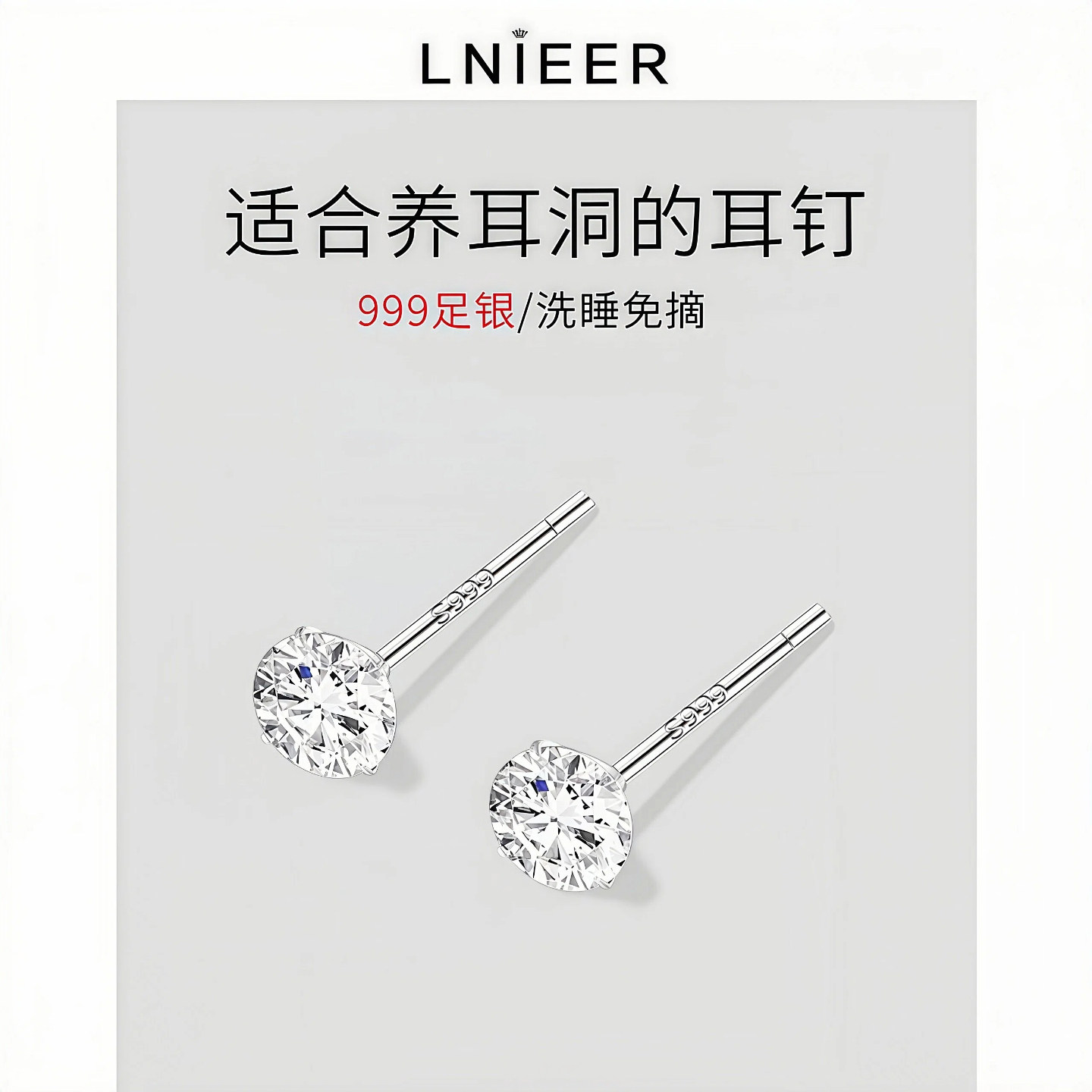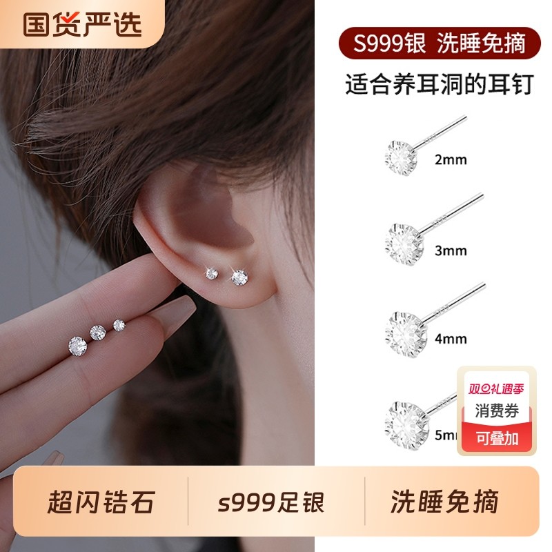 许我耀眼赵露思许妍同款999纯银养耳洞钻石耳钉女高级感耳环耳饰