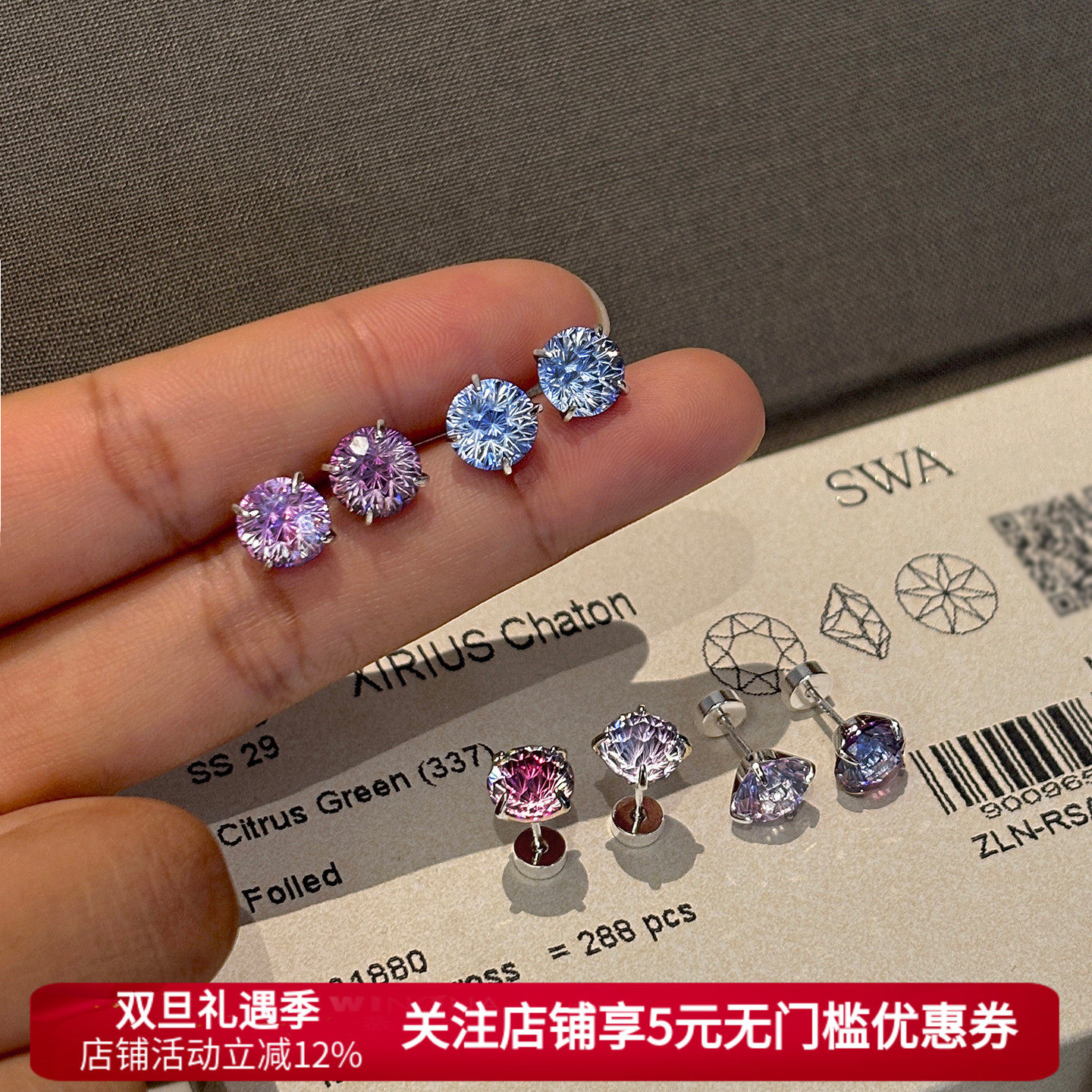 999纯银爆闪华子彩色钻石耳钉女2025新款爆款耳蜗耳骨钉耳环耳饰