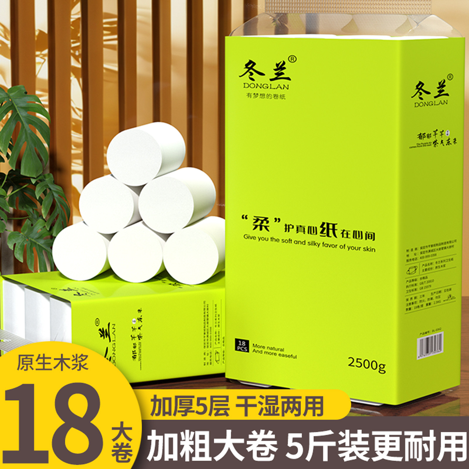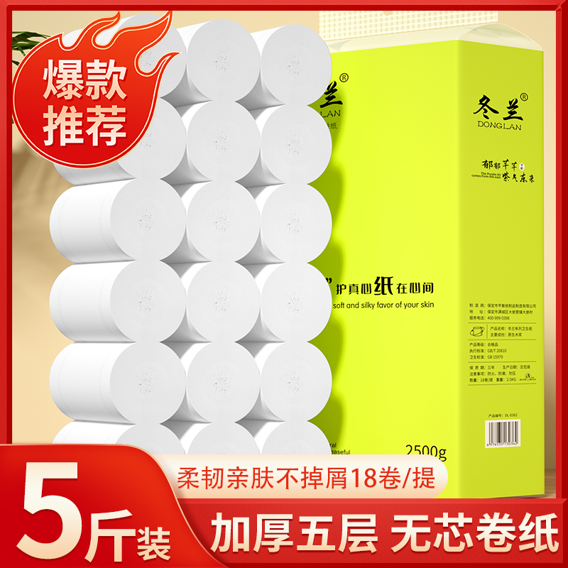 冬兰5斤18卷卫生纸大粗卷纸家用实惠装无芯卷筒纸擦手纸厕所厕纸