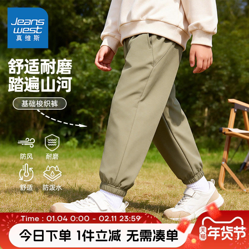 真维斯童装男童防水裤子儿童休闲户外冲锋裤春秋男大童加绒运动裤
