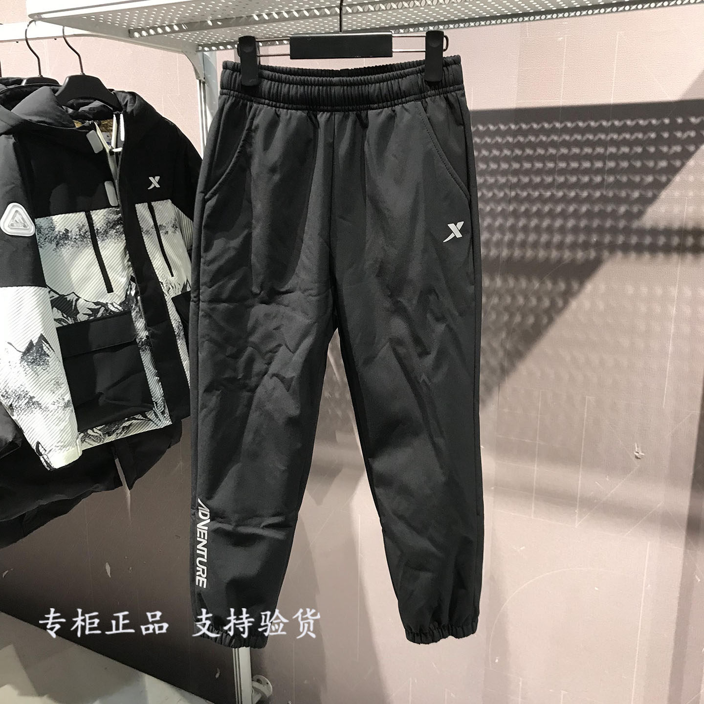 特步童装男童拼接运动裤儿童保暖长裤青少年冬季大童裤子加绒冬装