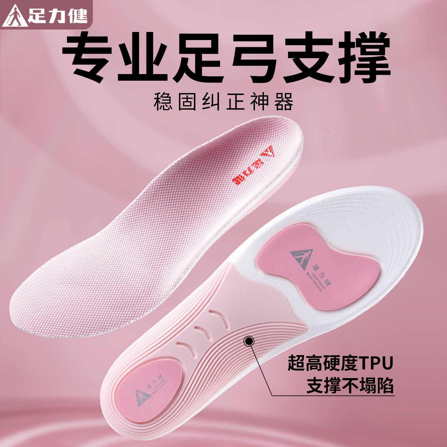 足力健女士专用足弓支撑鞋垫女款软底舒适久站不累防痛男吸汗防臭