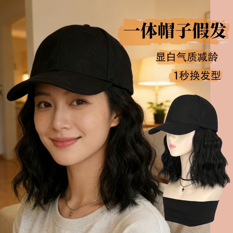 假发帽子帽一体女鸭舌帽时尚短卷发全头套式一体帽短发发丝显脸小