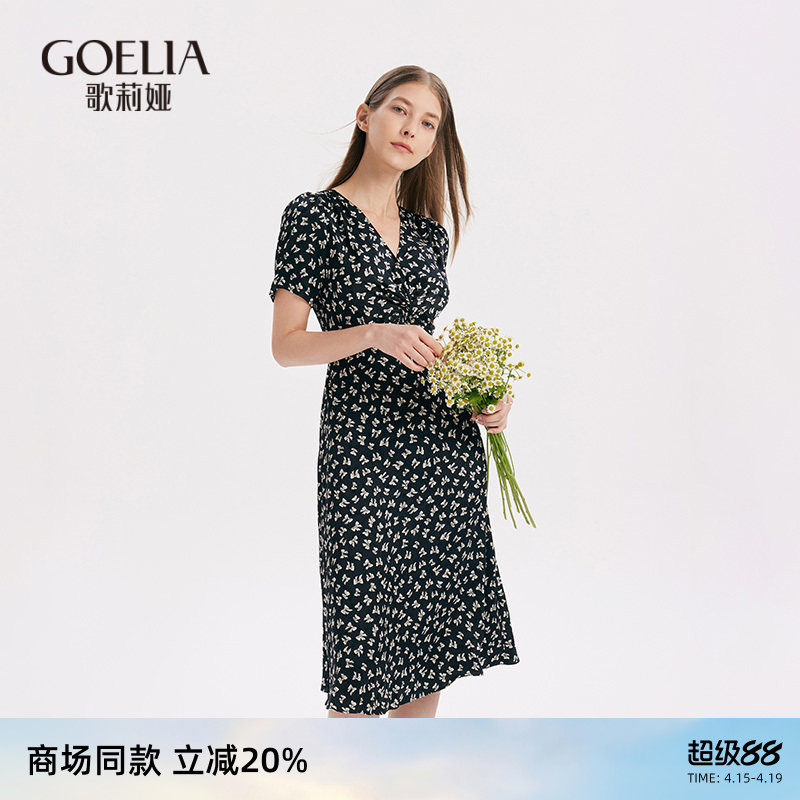 歌莉娅蝴蝶碎花裙v领连衣裙女夏装显瘦气质长裙礼服裙子1A6H4KAKA