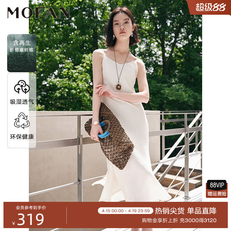法式浪漫无袖高腰吊带裙MOFAN摩凡夏装新款米白垂坠感显瘦连衣裙