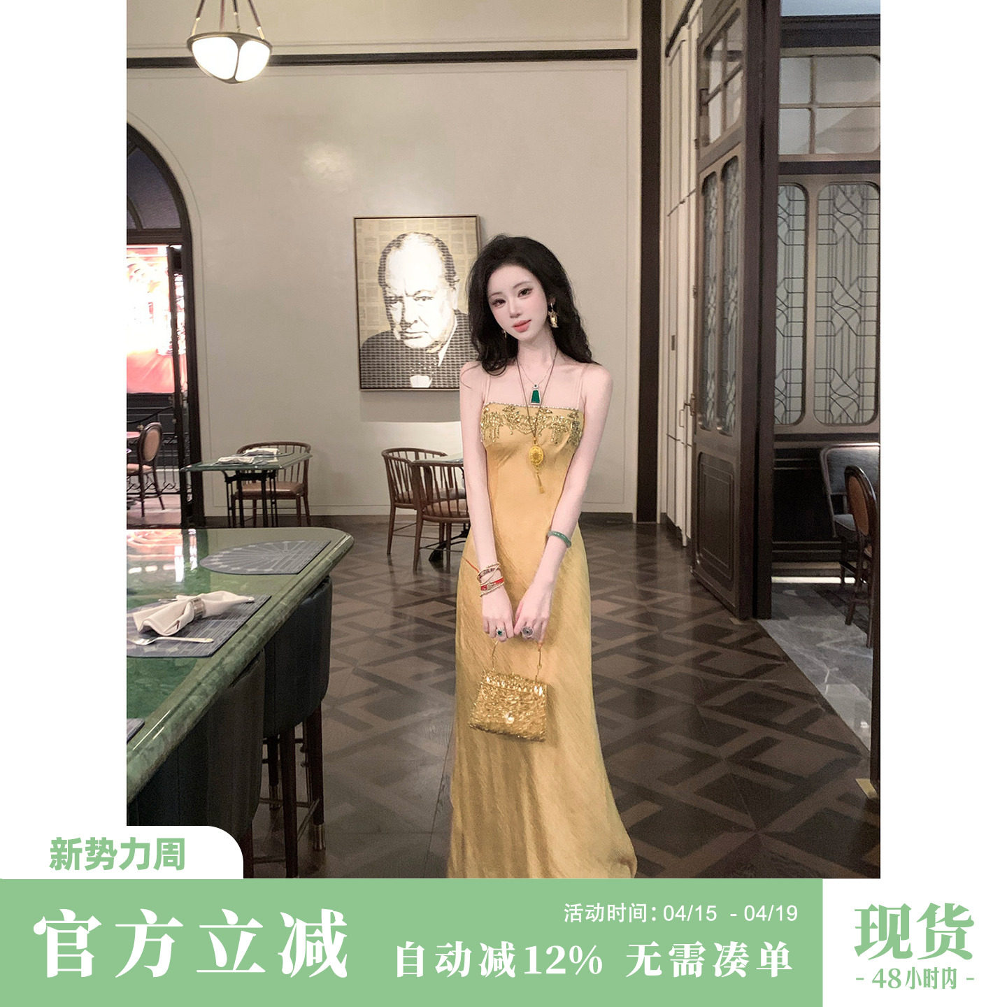 Sun雅乔【长安故梦】夏装国风复古珍珠织带新中式醋酸吊带连衣裙