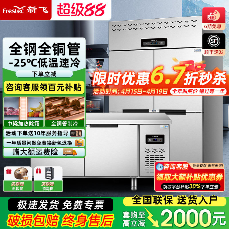 新飞 四门商用冰箱厨房冷藏冷冻六门冰柜4开门立式大容量工作台