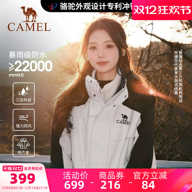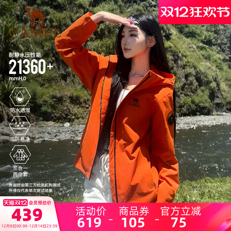 骆驼户外雨神冲锋衣女款三合一冬季加厚防风防水外套男旗舰店正品