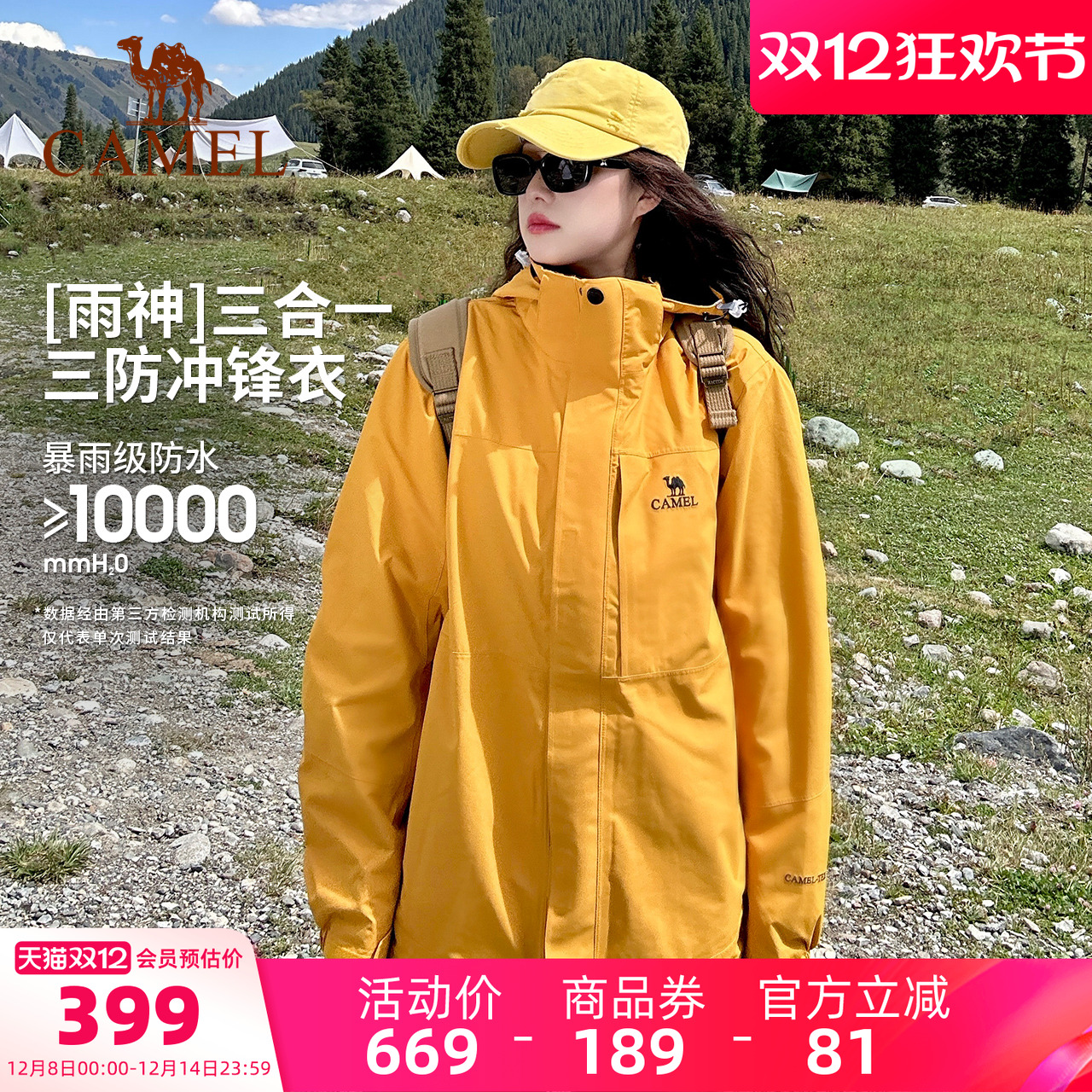 【谷子黄】骆驼冲锋衣男女冬季外套三合一防水户外进藏旅游登山服