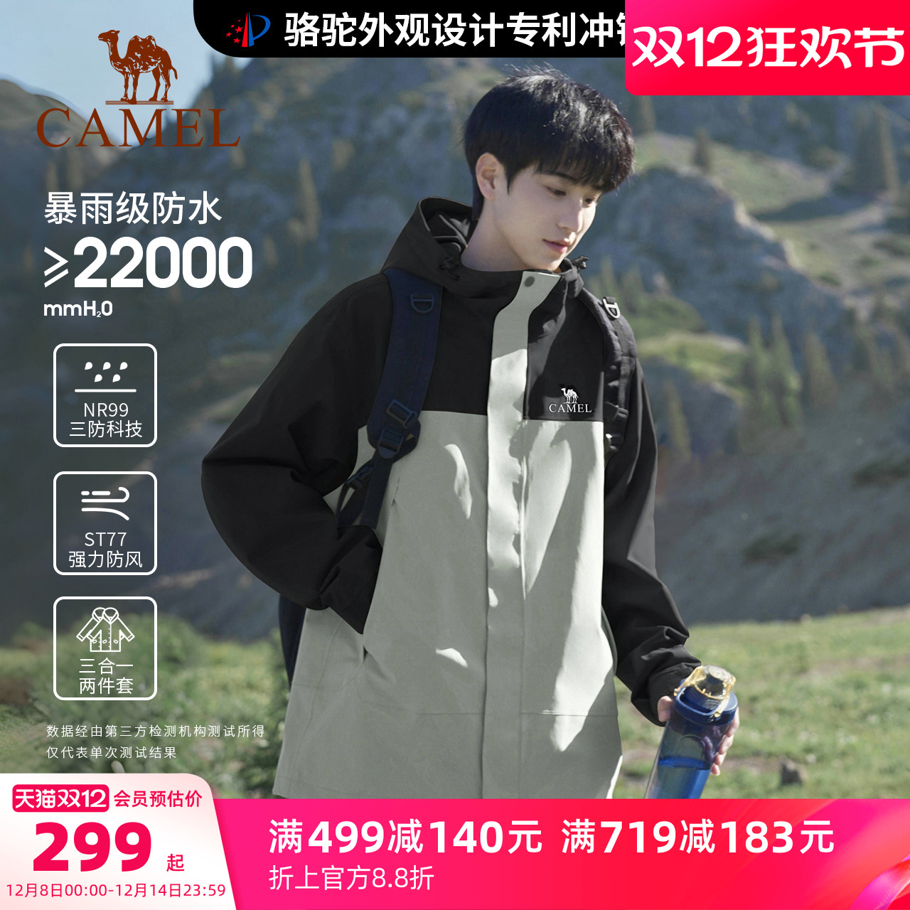 骆驼雨神冲锋衣2.0版三合一冬季加厚新款外套男户外防水登山服女