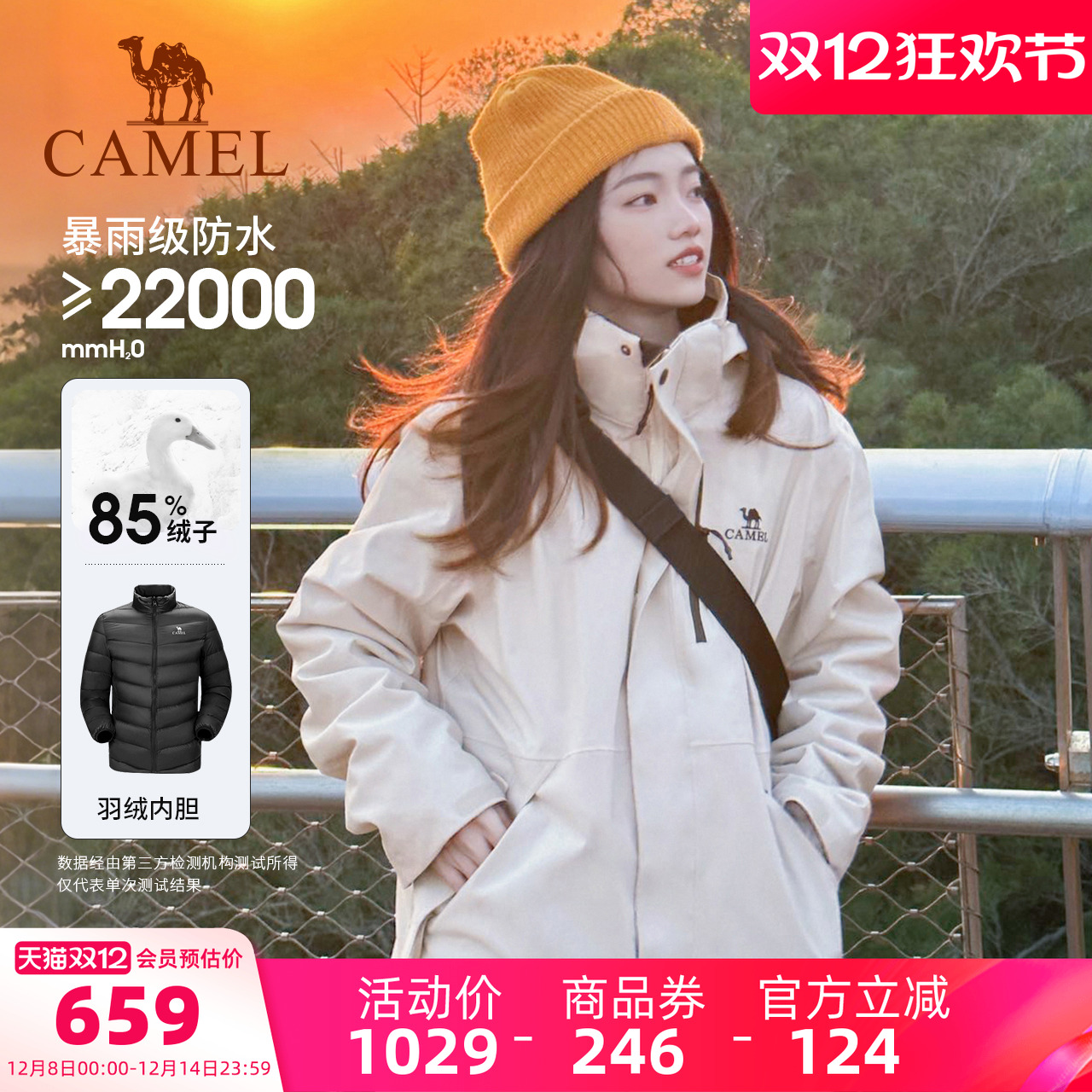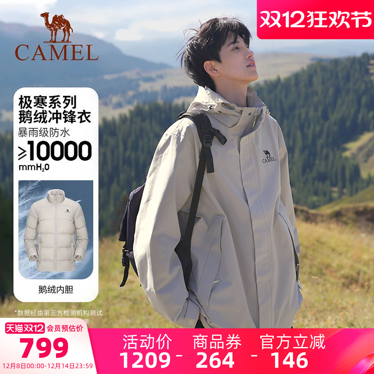 骆驼户外雨神冲锋衣男三合一羽绒服冬季防水外套女三防旅游登山服