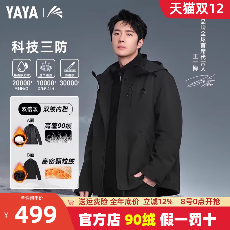 王一博同款鸭鸭冰壳冲锋衣羽绒服男冬季三合一户外三防加厚外套女