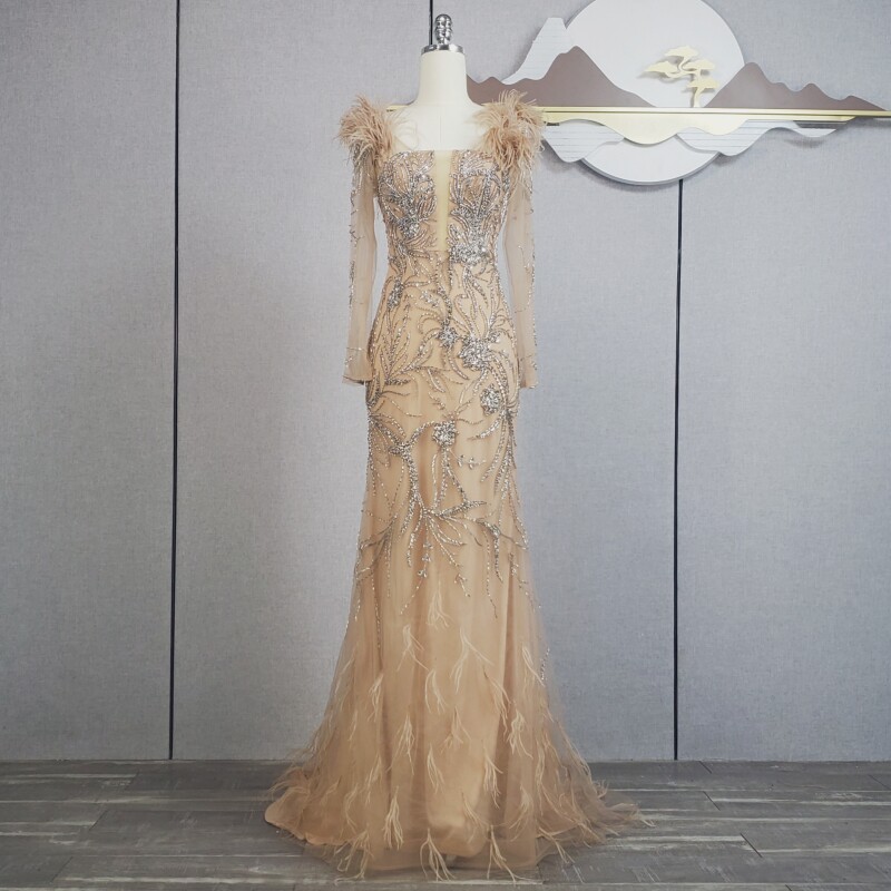 高端奢华重工修身显瘦鱼尾晚礼服名媛晚宴年会演出口外贸中东迪拜