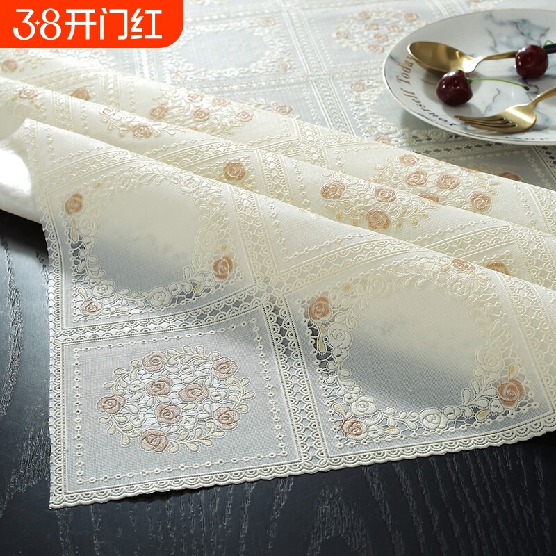 餐桌布布艺蕾丝现代简约长方形家用北欧轻奢风中式台盖布椅垫椅套