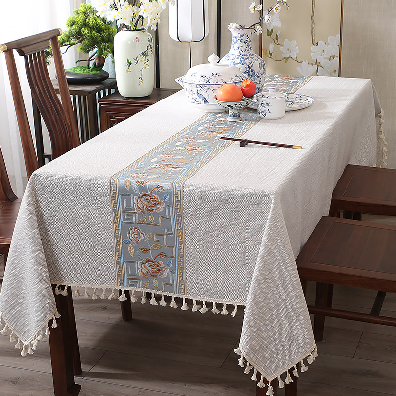 新中式餐桌布布艺棉麻风亚麻轻奢高级感2025新款长方形茶几桌垫