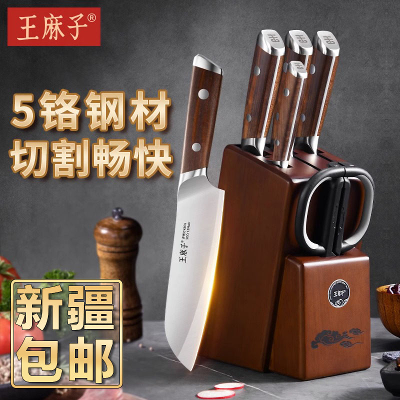 新疆包邮王麻子流云刀具套装全套菜刀菜板二合一家用厨具组合官方