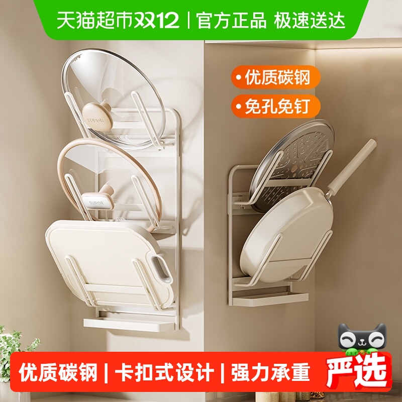 包邮苏泊尔免打孔锅盖架子壁挂式多功能厨房置物架放置砧菜板收纳
