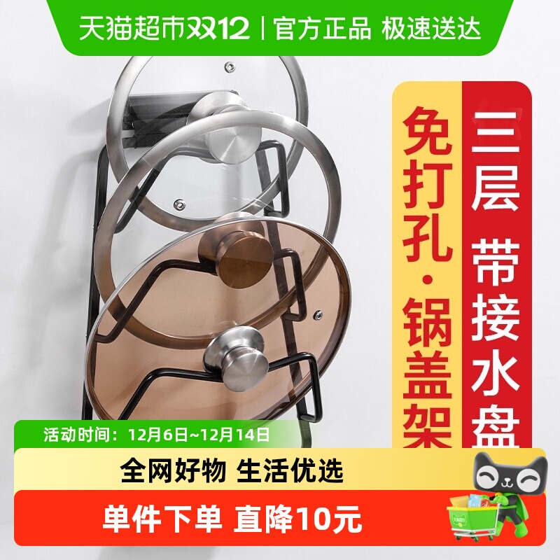 包邮 贝瑟斯厨房锅盖架免打孔壁挂放菜板锅盖的架子带接水盘用品