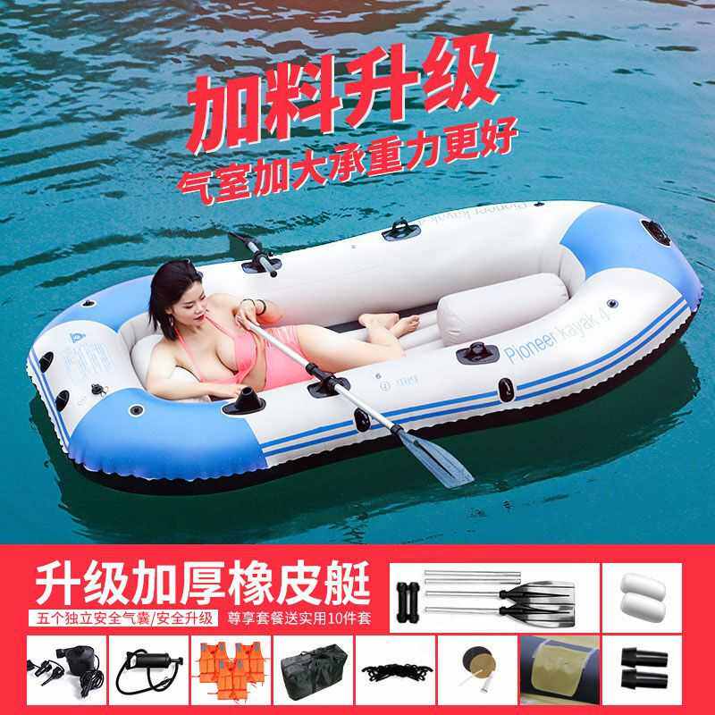 充气船橡皮艇加厚耐磨钓鱼2/3/4人充气船双人皮划艇铺渔船冲锋舟