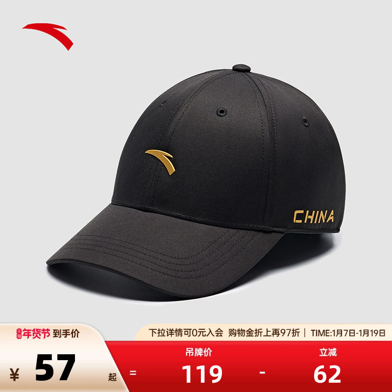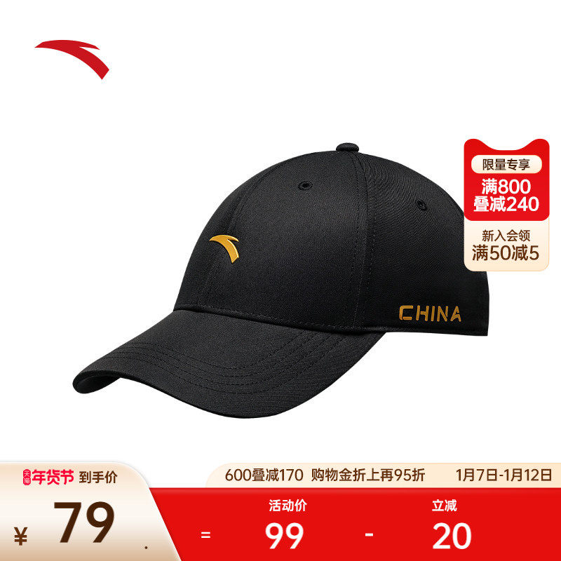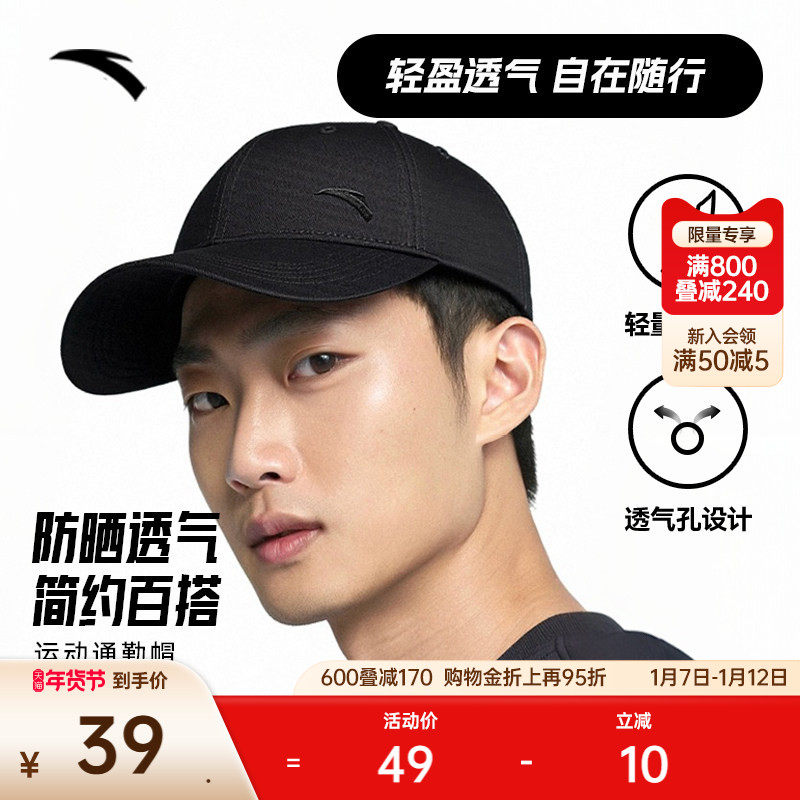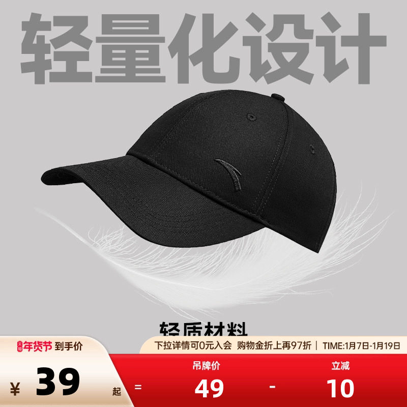 安踏运动帽跑步健身徒步遮阳帽简约基础百搭棒球帽休闲纯色鸭舌帽