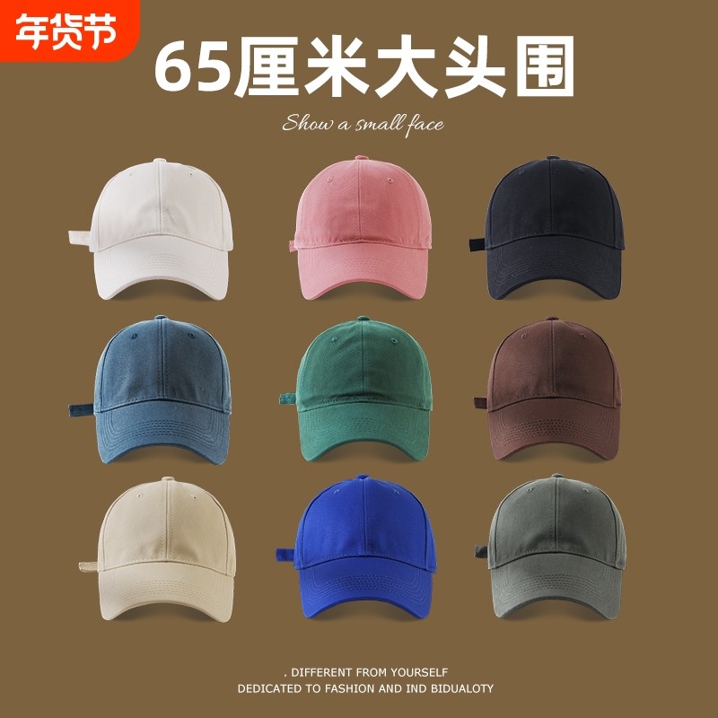大头围帽子男款鸭舌帽男潮显脸小宽帽檐棒球帽女纯色百搭韩版大码