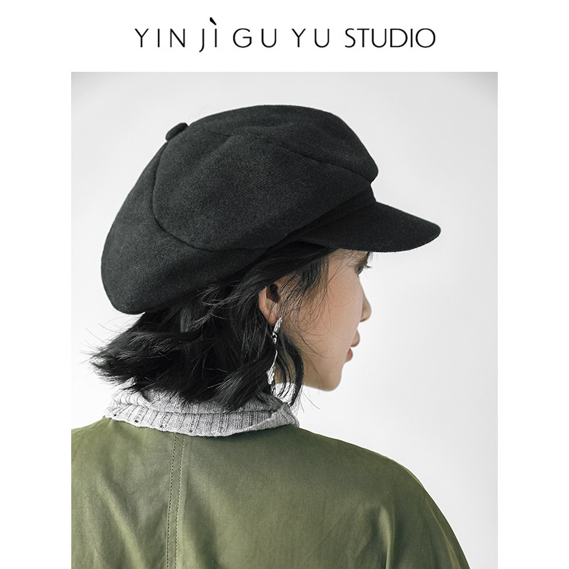 印计谷羽 毛呢报童帽女秋冬天文艺复古帽子纯色鸭舌帽百搭画家帽