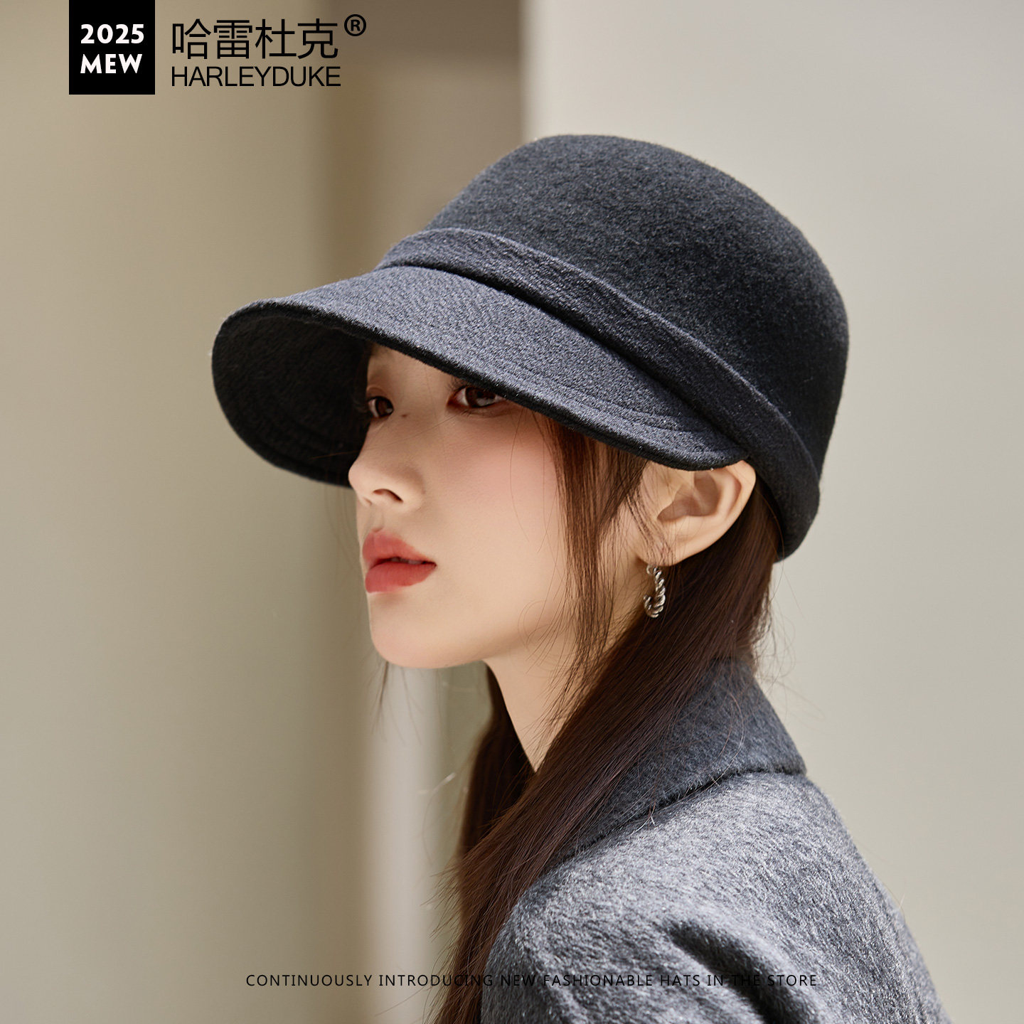 高品质羊毛八角帽女秋冬时尚百搭保暖纯色鸭舌帽显脸小气质画家帽
