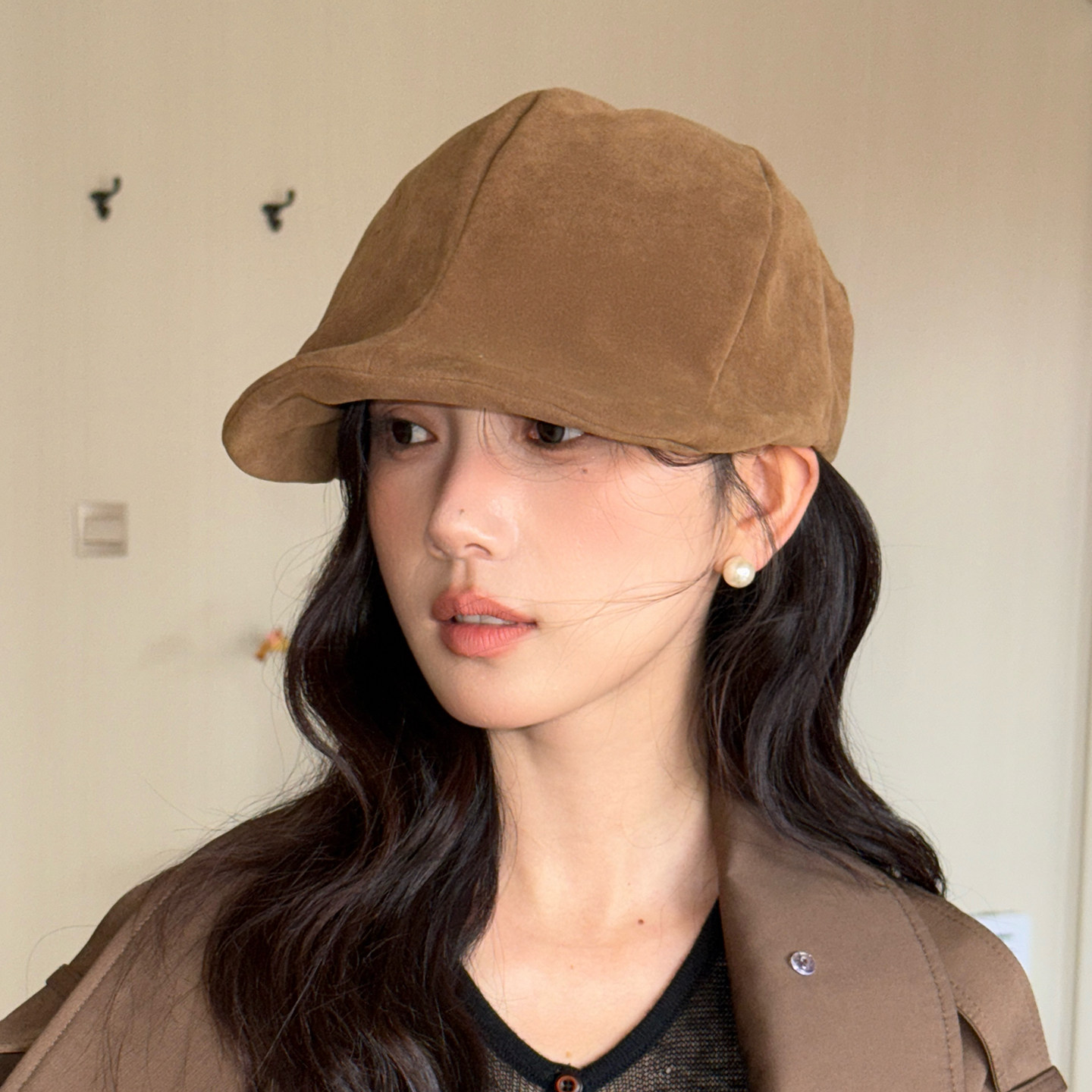 英伦复古纯色鸭舌帽子女秋冬新款百搭麂皮绒前进帽户外休闲贝雷帽