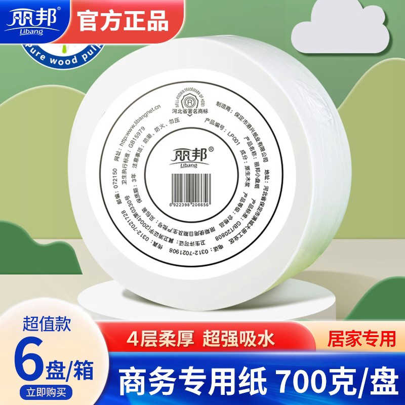丽邦 卫生纸4层大盘纸整箱厕纸卷纸 卷筒纸700g/盘*6盘组合纸巾
