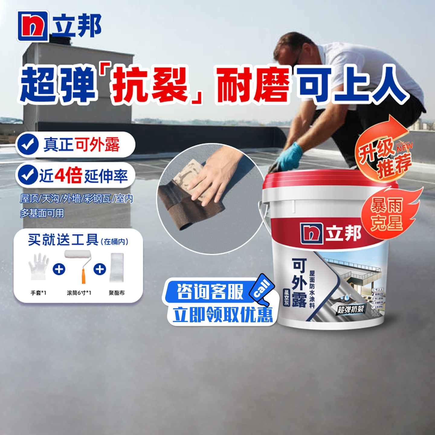 立邦屋顶补漏防水胶补漏裂缝渗水防水材料涂料水泥房顶楼顶堵漏王