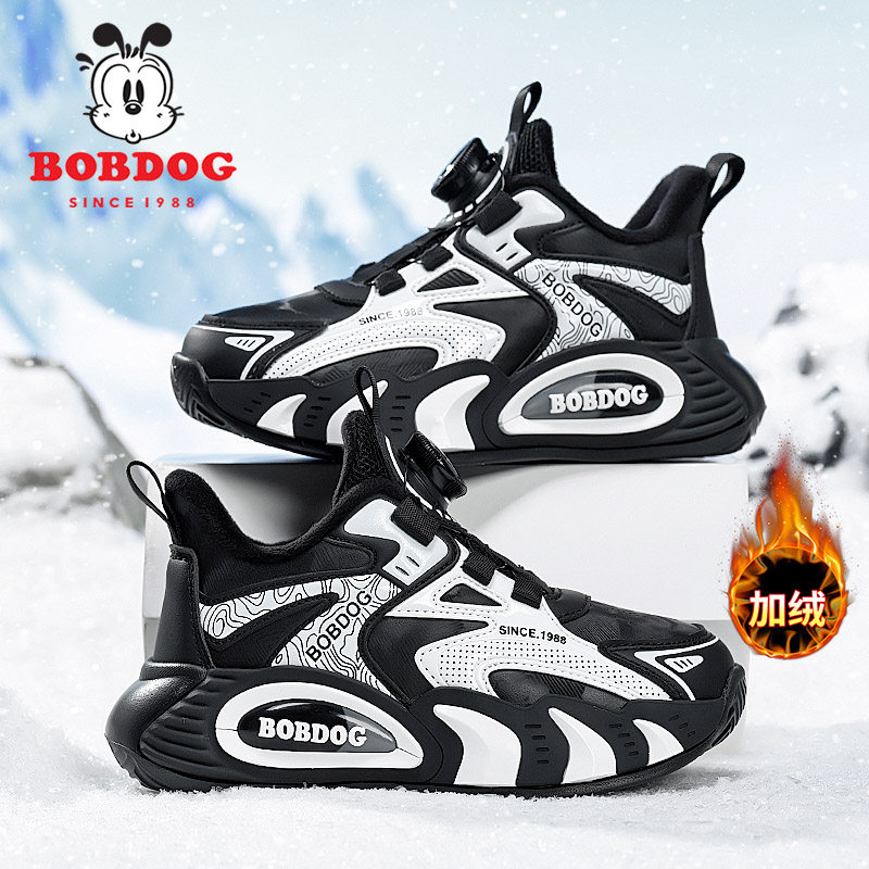 巴布豆童鞋男童运动鞋冬季2025新款中大童皮面防水加绒儿童二棉鞋