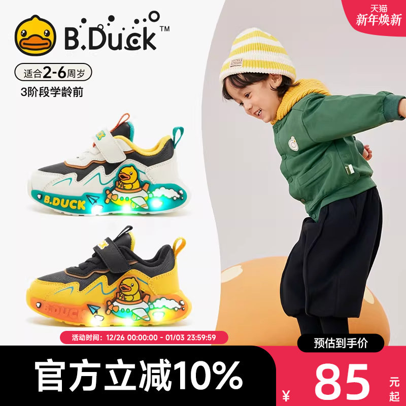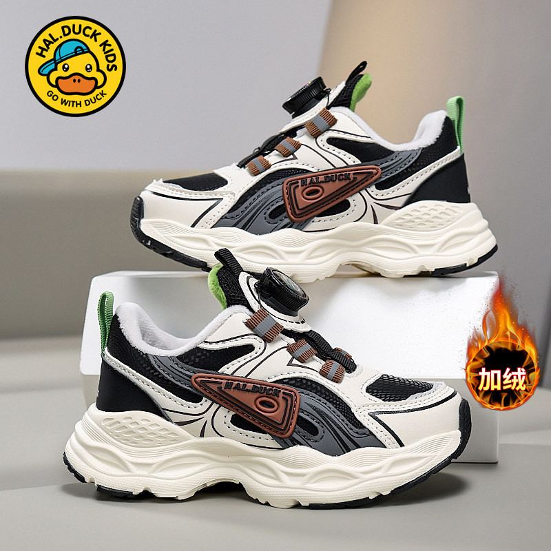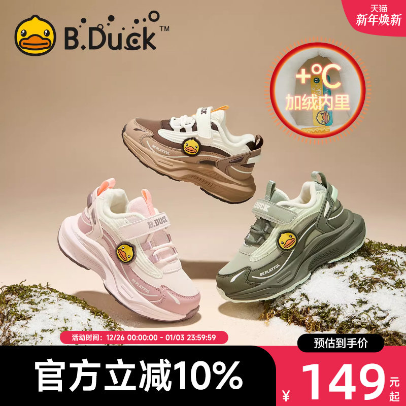 B.Duck小黄鸭童鞋男童运动鞋冬季新款儿童加绒棉鞋女宝宝保暖鞋子