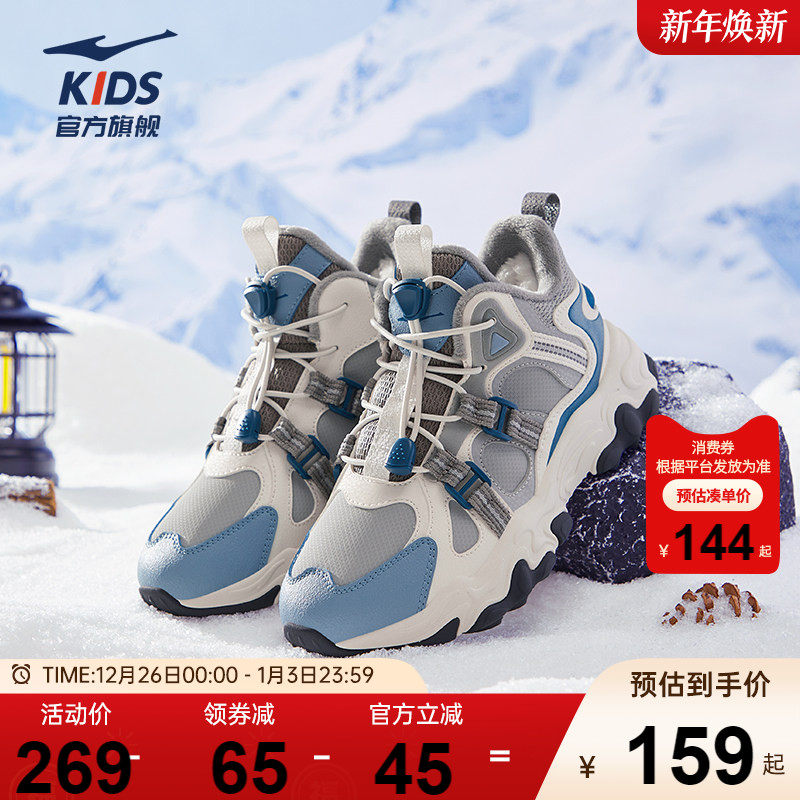 鸿星尔克童鞋男童运动鞋冬季保暖加厚儿童休闲棉鞋高帮加绒雪地靴
