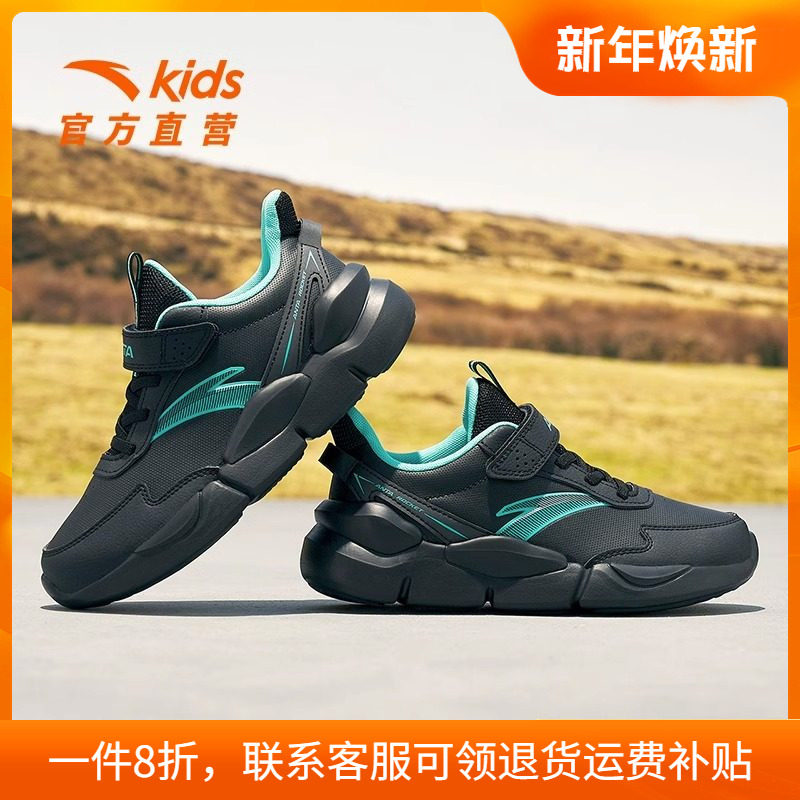 安踏儿童鞋男童运动鞋冬季新款大童皮面黑色跑步鞋旗舰店官方正品