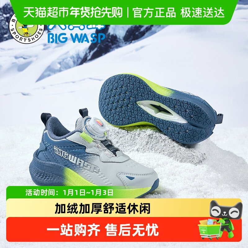 大黄蜂童鞋男童运动鞋冬季新款旋转扣保暖加绒儿童二棉鞋碳板跑鞋