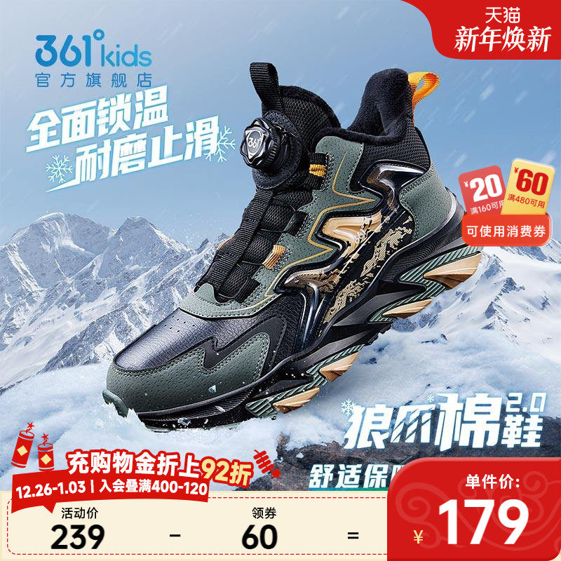 山行|361童鞋男童运动鞋冬季新款青少年男孩棉鞋保暖儿童户外鞋子