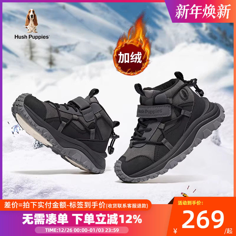 暇步士童鞋男童运动鞋冬季儿童加绒保暖休闲鞋中大童防滑雪地鞋男