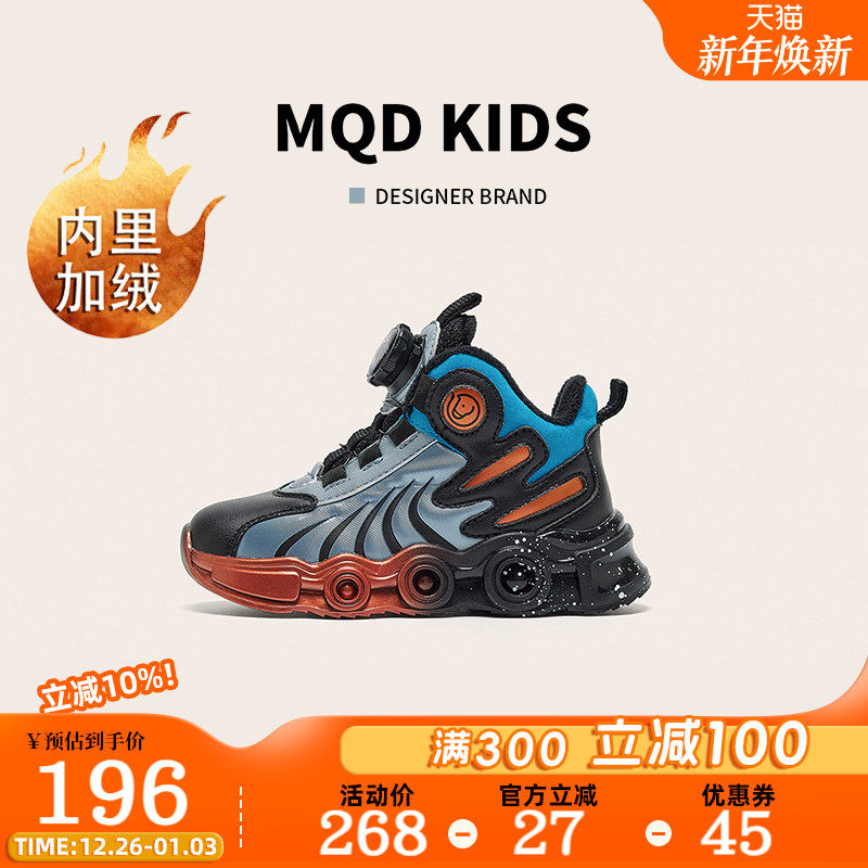 MQD马骑顿童鞋男童运动鞋冬季加绒加厚保暖休闲跑步儿童纽扣棉鞋