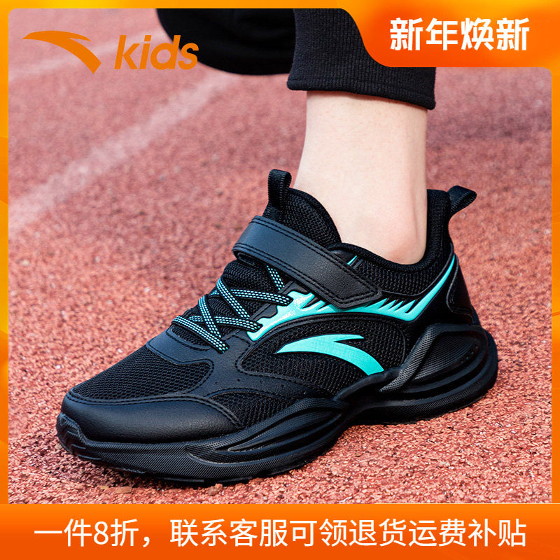 安踏童鞋男童运动鞋冬季新款官方正品大童儿童网面透气黑色跑步鞋