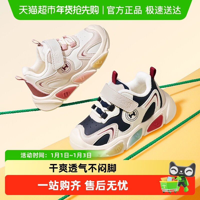 牧童童鞋男童运动鞋冬季儿童保暖闪灯鞋轻便跑步幼儿园加绒女童鞋
