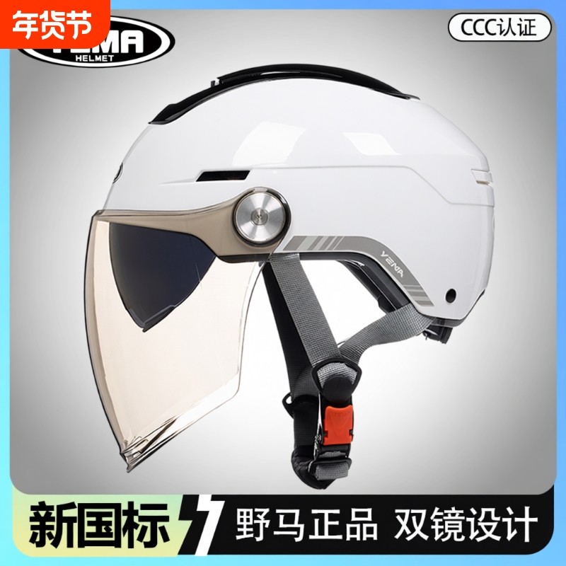 野马3C认证新国标电动摩托车头盔夏季防晒双镜男女半盔四季安全帽