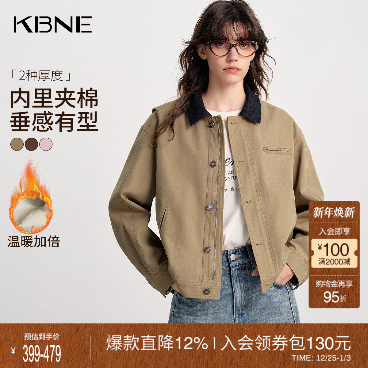 KBNE巴恩风短款夹棉外套女小个子2025秋季新款卡其色气质风衣上衣